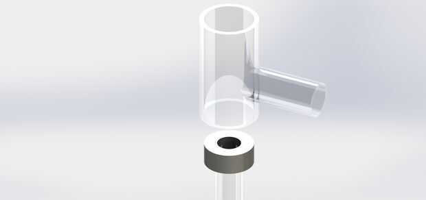 La salida de la pipa es una pipa de estireno transparente largo 110 mm con diámetro interno de 50 mm y exterior 60 mm. A 28 mm agujero de diámetro es perforado entonces desde el lado, 25 mm de la parte inferior. Una sección de 80 mm del tubo entonces se inserta y pega en el agujero, como una toma de agua.