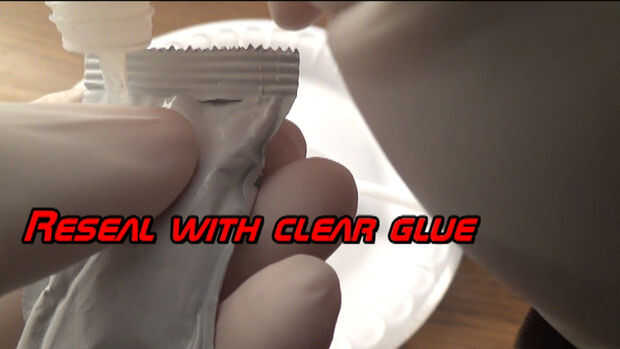 * Uso de pegamento transparente, sello hacia arriba y lo pones de nuevo con el resto de los paquetes.