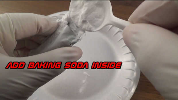 * Una vez que tienes tu apertura, tome una cuchara completa y agregar bicarbonato de sodio en ella, utilice como le parezca.
