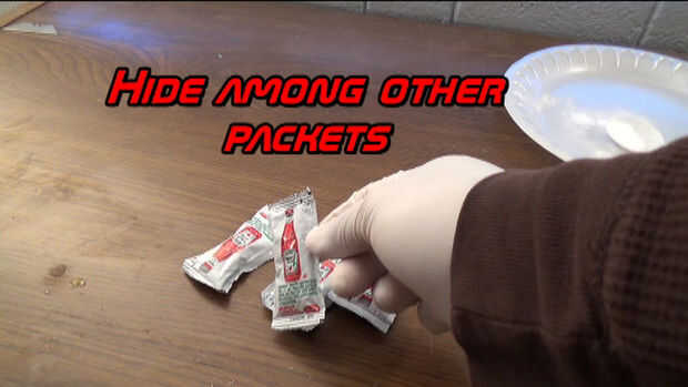 * En primer lugar tomar un paquete de salsa de tomate y con una cuchilla cuidadosamente hacer una raja en la tapa ver de él, sólo asegúrese de su recto y preciso.