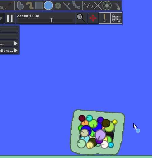 Ahora después de hacer clic en el botón play, llene la caja con un montón de pequeños círculos con la herramienta círculo. Para que la bomba a trabajar, llenarlo para que todo lo interior está abarrotado. Cuando está llena, algunos círculos va a tirar hacia fuera. Pare cuando llegue a ese punto.
