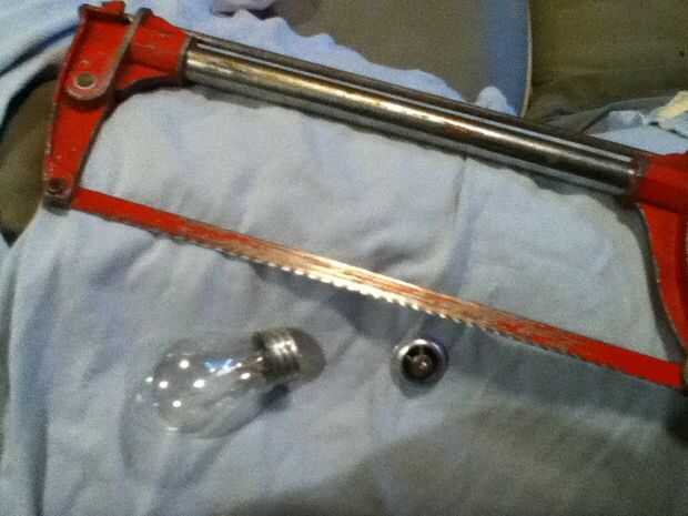 En primer lugar es necesario abrir el foco, utilicé una sierra de mano para esto, pero si tienes algo más delicado no dude en usarlo