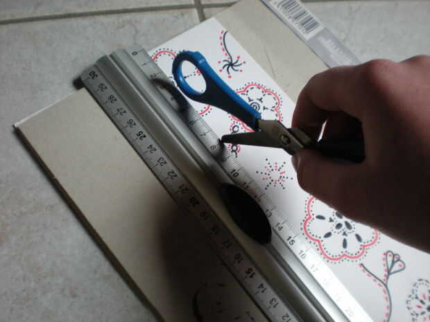 Una vez que adorna el rectángulo, coloque una regla sobre la línea entre su longitud y los centímetros extra. Ir sobre esta línea, a lo largo de la regla, con blunt tijeras o un cuchillo romo. Esto le ayudará a doblar a lo largo de la línea más tarde.