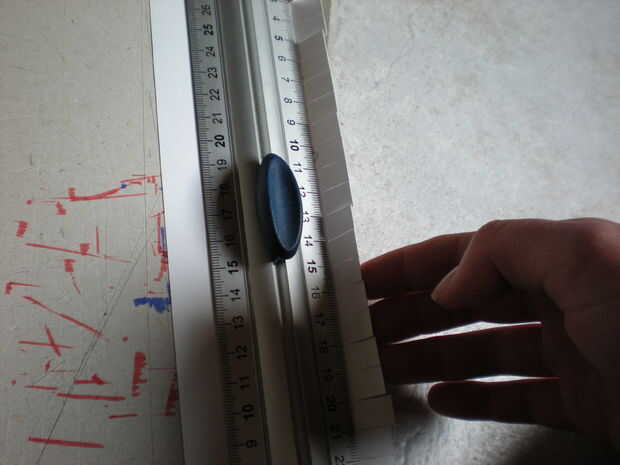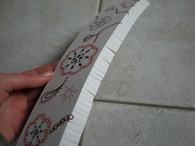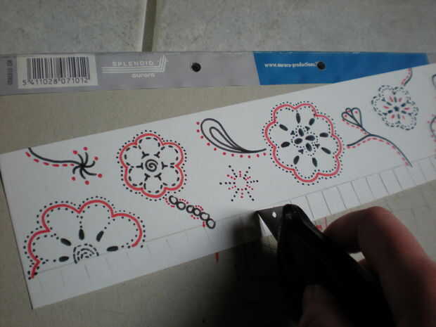 Una vez hecho esto, doblar todas las piezas pequeñas a lo largo de la línea que sólo trazada con su Cuchillo embotado o tijeras. Doblarlas hacia el lado que no está decorado.