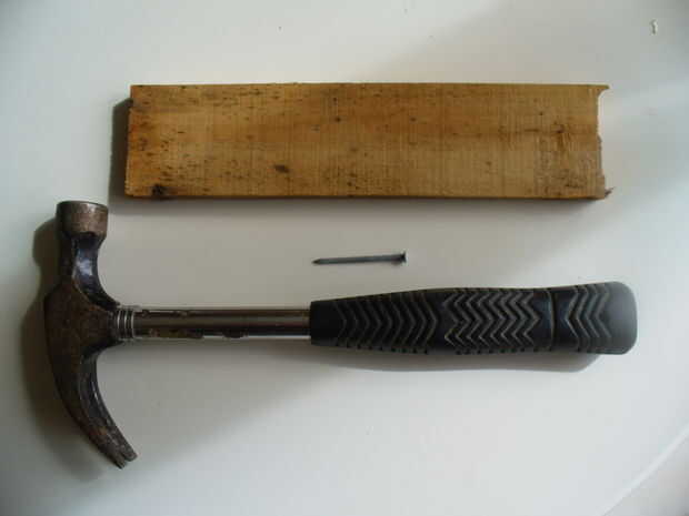 Incluso la más básica de kits de herramientas debería tener a siguiente: Martillo De uñas Madera (o la otra superficie prescindible!) Pinzas (no se muestra - pero no imprescindible)