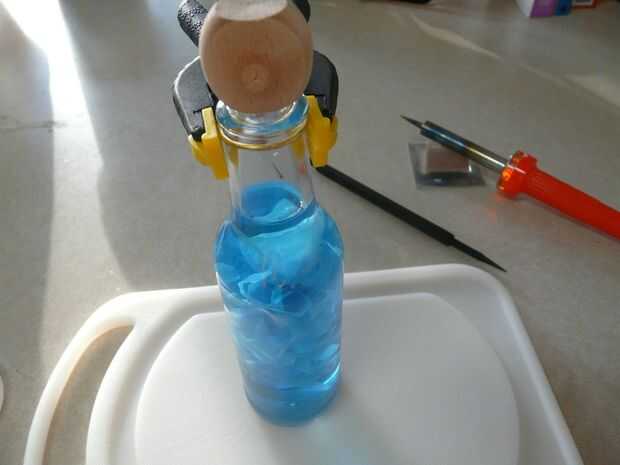 En este punto lo voy a tratar el punto importante de adaptar el plan original durante la implementación. Usted puede haber notado en mi plan de elaboración de algunos postes decorativos sobre el cuello de la botella. Iba a utilizar los clavos de tapicería para adornar el cuello, pero encontrado que encajaba bien con la curva de la botella por lo que disminuyó. También comencé a dibujar un interesante sello de la botella pero cortarlo porque bloquea demasiado a la vista de las medusas. Editar su diseño no es fracaso. Es no adaptar a la realidad.