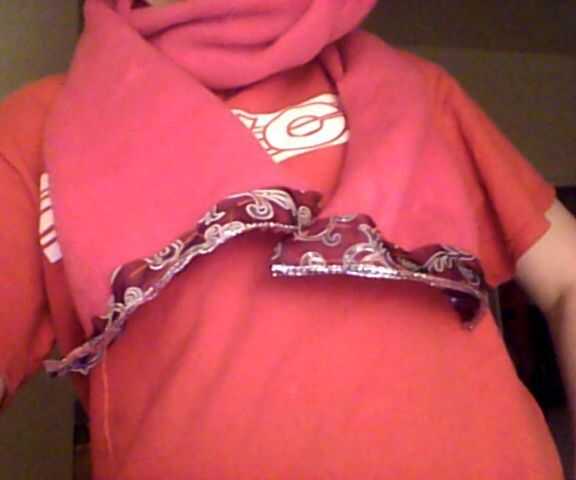 Qué elegir fue un bonito blanco y negro y se ve bien con la bufanda rosa, pero por supuesto usted puede elegir su propia cinta lo que te sugiero es que en el ancho de tu bufanda como yo lo hice.