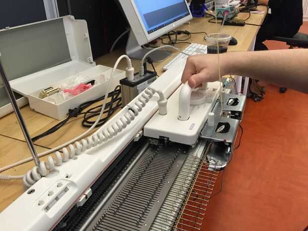 Finalmente, ajuste las perillas que teje a continuar O. mover el carro hacia adelante y hacia atrás a punto su