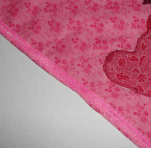 Gire el bandana bastante lateral hacia fuera a través de la apertura y la prensa. O puntada alrededor del borde externo usando la presión del pie como su guía, bonita cinta en el borde de la puntada como yo lo hice.