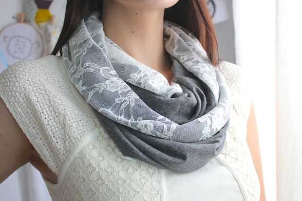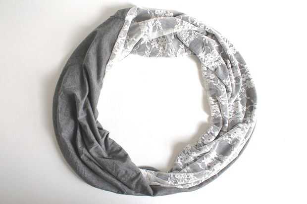 He elegido para hacer mi infinito de la bufanda de jersey gris y cordón del estiramiento porque me gusta la manera que miran juntos. : D