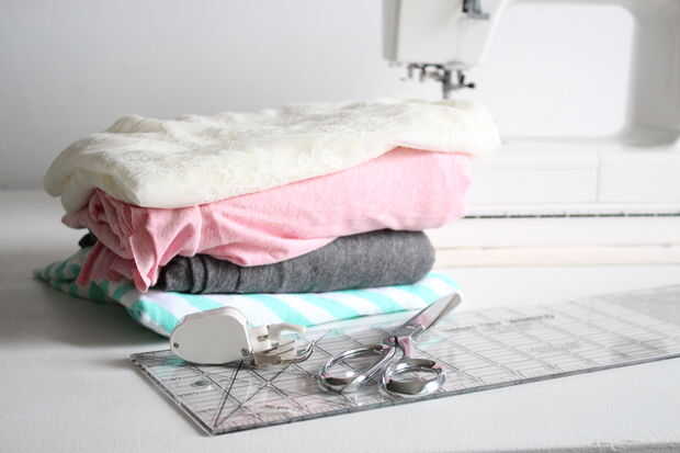 - 2 piezas de tela de 14 x 60 pulgadas - estoy usando cordón del estiramiento y jersey