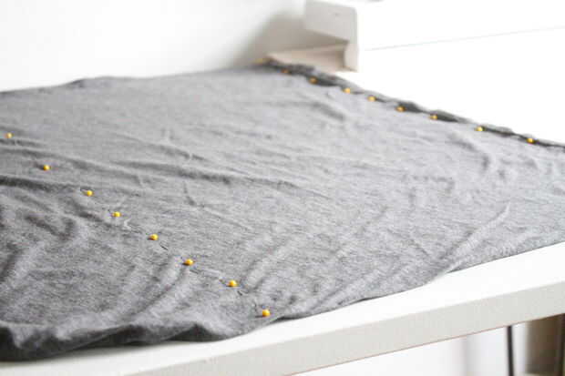 Si trabajas con jersey, recomiendo las líneas a las afueras de donde te corte la fijación - jersey puede estar un poco resbaladizo y tratar de huir de usted si no fijarlo. Fijación mantendrá ambas capas juntas como cortes. :)