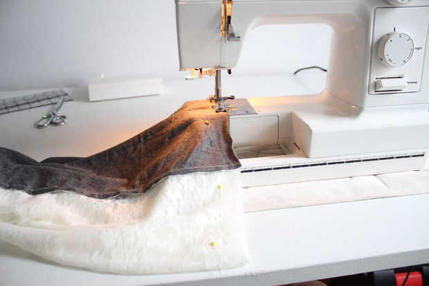 Si su máquina de coser tiene un brazo libre, sacar la cama así que usted puede coser en la ronda. De lo contrario, sólo establecen los extremos de la bufanda para que puede realizar a través de una única capa a la vez.