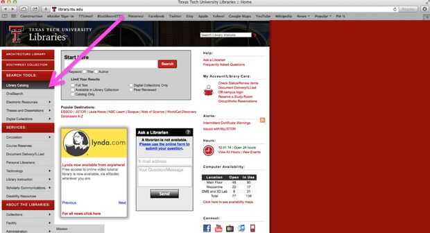 Cómo hacer una búsqueda por palabras clave usando el catálogo en línea de la biblioteca de la Universidad de Texas Tech (2 / 12 paso)