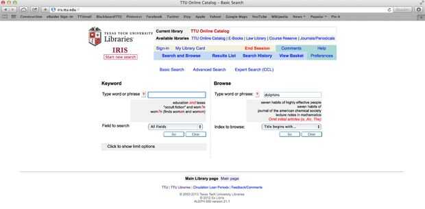 Cómo hacer una búsqueda por palabras clave usando el catálogo en línea de la biblioteca de la Universidad de Texas Tech (3 / 12 paso)