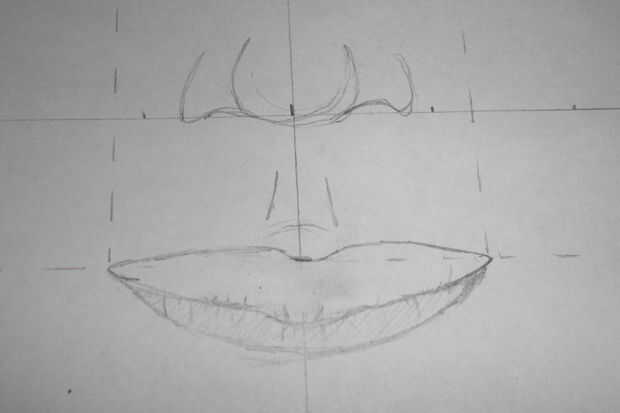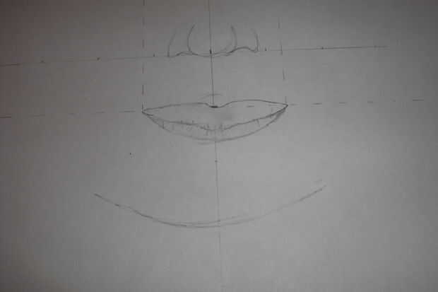 thes1. hacer la boca entre el centro de los ojos y en la línea central de las restantes líneas (tercera línea) como la imagen y la forma que en la fotografía es