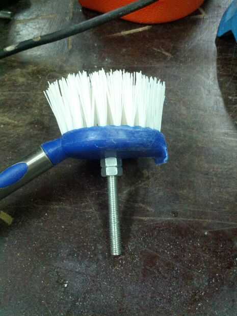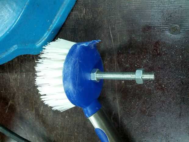 Fije el tornillo en la parte superior del cepillo con las tuercas tanto . Esto es fundamental porque va ha prevenir las tuercas de la mudanza mientras que gira el cepillo.