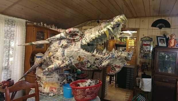 Después de que las características se han añadido, toda la cabeza está cubierta de papel maché. está cubierto con tres capas, dos mediante mezcla de cel como adhesivo y dos utilizando Araldite/PVA como pegamento para añadir dureza.