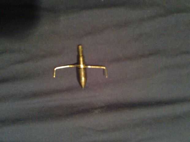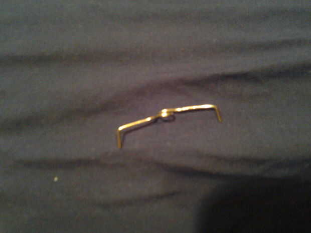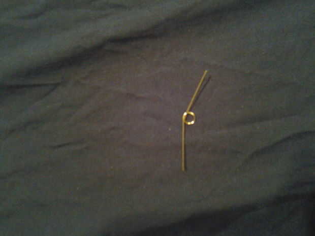 lo que quieres hacer es acortar el alfiler cerca del extremo. entonces straiten el pin por lo que parece una línea con un lazo en el centro. Luego doble los extremos hacia arriba, así que tiene un diente