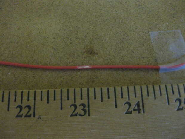 Extienda ambos cables sobre la superficie de trabajo junto a su medidor palo o palillo de la yarda. Cinta adhesiva los extremos hacia abajo para los cables rectos.