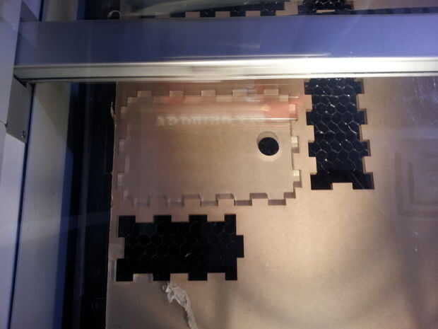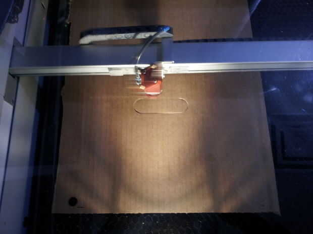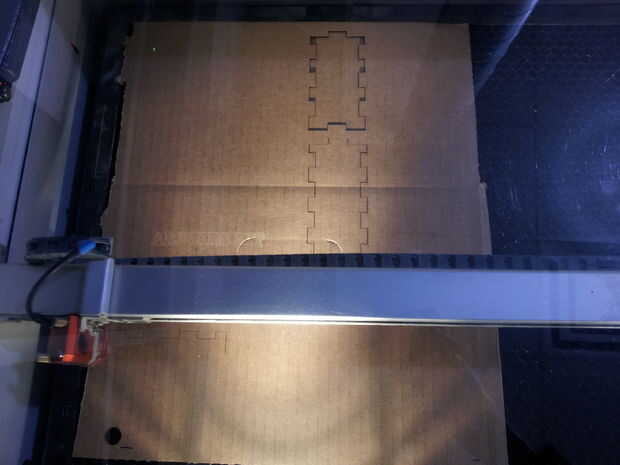 Ahora, si lo desea, puede utilizar el cartón como una prueba de corte para asegurarse de que todo funciona correctamente y los láseres correctamente. Observe cómo cuando corté el cartón, soy capaz de saltar fácilmente cada pieza de la caja. Una vez que estés seguro, listo tu pedazo de acrílico en el cortador del laser y corte. Para el acrílico pedazos hacia fuera, puede tomar el láser dos cortes, así que jugar en consecuencia.