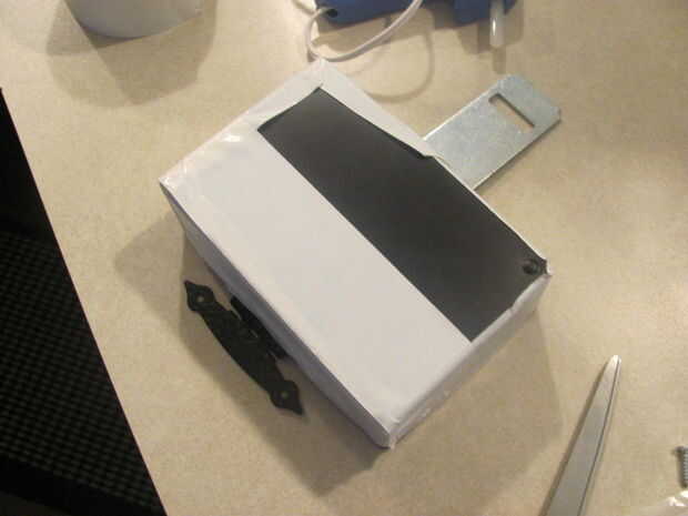 demostró cómo hacer una caja utilizando una caja de almacenaje, pegamento de silicona, cortador y paño grueso (alfombra). Comparé mi viejo sistema de la caja de litera del gatito para arriba con la nueva caja para ayudar a los televidentes a hacer su