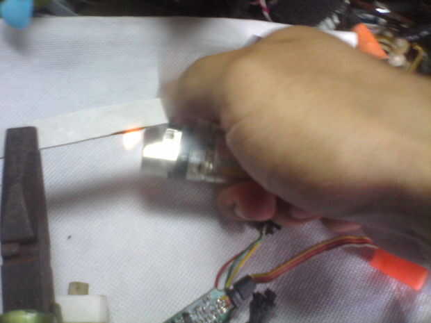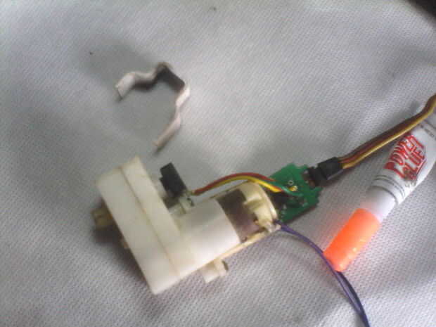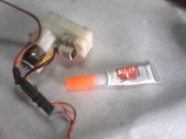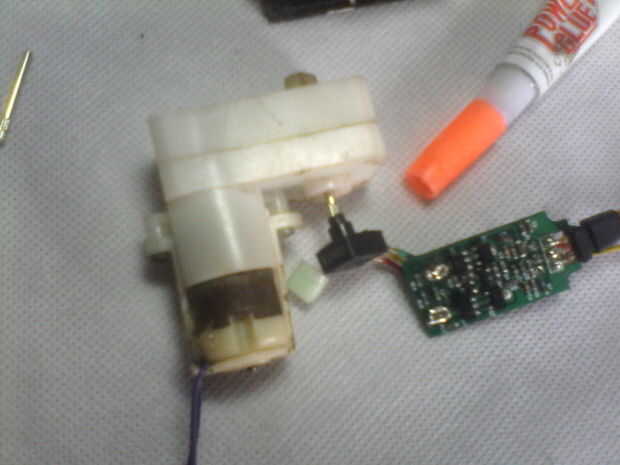 • plastik en la caja de cambios, manteniendo el potenciómetro en la caja de engranajes del enchufe, utilice un poco de pegamento super. Asegúrese de que el plástico ponerte fuerte y potenciómetro en lugar de soportar.