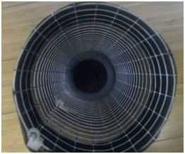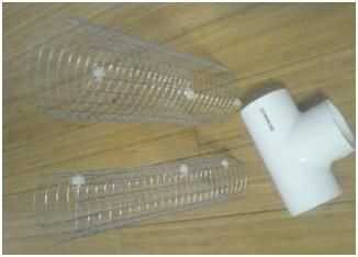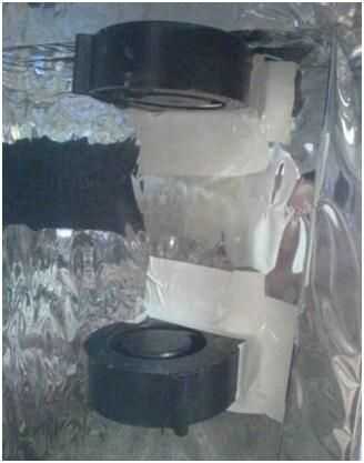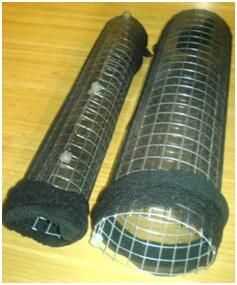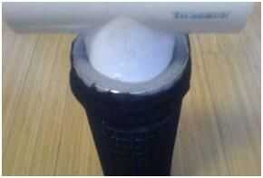 Envuelto en unas pantimedias para sostener el carbón activado en lugar