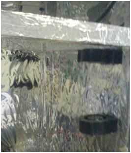 Ahora tengo los ventiladores conectados y les colocará en el compartimiento de crecer donde no interrumpirá la luz desde la parte superior.