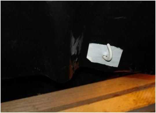 Encontré un gancho repuesto e hizo lo mismo con el centro de la parte inferior de la láminas que hice cuando engrapar el cubrir a la caja de plástico. Esto me permite quitar la chapa cuando quiere y mantiene intacta la del orificio de apertura de todos los días.