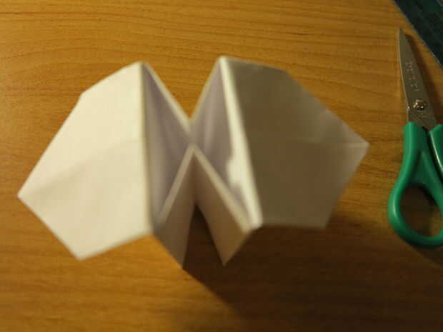 Ahora toma ambas aletas y poner para arriba. Usted debe ver el tipo medio de apertura, pero si no abra y no te preocupes. Ponga uno de ustedes los dedos en la abertura y presiona a los lados hasta que hacen un cuadrado y todo listo, ¡ disfruta! :)