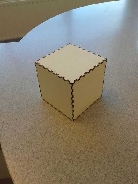Ir a http://boxmaker.connectionlab.org/ y utilizar las medidas de los espejos que desea utilizar para hacer una caja. Cada lado de la caja debe ser aproximadamente tan grande como un espejo por lo que fácilmente puede pegar los espejos a la caja. Cuando haya diseñado la caja habrá cortarlo hacia fuera con un cortador láser. Cuando esto esté hecho sólo tienes que unir los laterales de la caja y tiene una caja que va a servir como la base para la caja del espejo infinito.