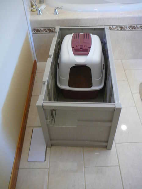 Fijar la caja de arena de gato que va a utilizar en el extremo de la caja enfrente del agujero que usted cortó.