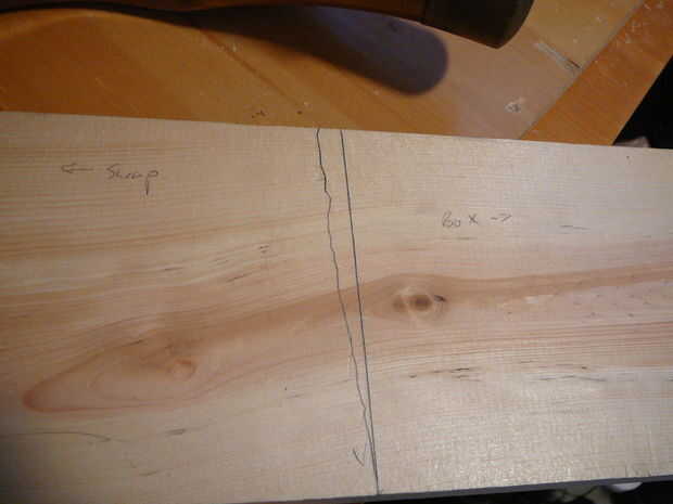 Vio el tablero a lo largo de la línea. Esto funciona mejor si usted vio un poco de ambos lados. Si empieza en un lado y vio a través de todo el camino, allí se va dividir en la parte inferior de la Junta Se puede ver en la foto, porque yo trabaje con ella por ambos lados, la división ocurrió en medio de la Junta y limpian muy bien.