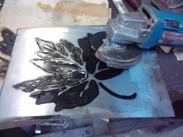 Después de hecho esto es hora de cortar el acero que no quieren (los pedacitos donde usted desea que la luz brillante aunque). Es muy difícil de conseguirlo todo exacto ángulo moliendo así que usted puede tener que ver más o menos, que es lo que tenía que hacer y luego presentar para sobrehilar hasta los bordes.