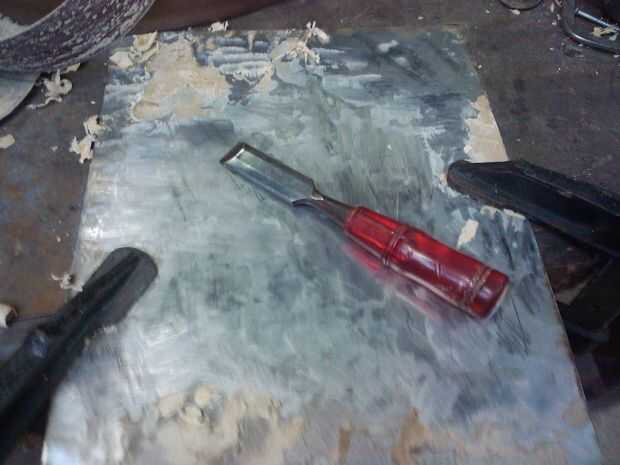 Después de que ha cortado esta usted se necesita para comprobar y ver si hay algo que usted puede hacer antes de empezar a cortar las piezas de exceso. Lo que hice fue archivo abajo de los bordes y se deshizo de todo el pegamento en la parte posterior del acero.