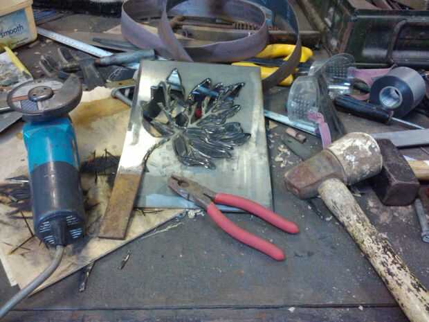Ahora usted necesita eliminar el exceso de acero. Para ello haz tu amoladora y cortar los trozos no deseados. Cortar hacia fuera como cerca de la línea como sea posible.