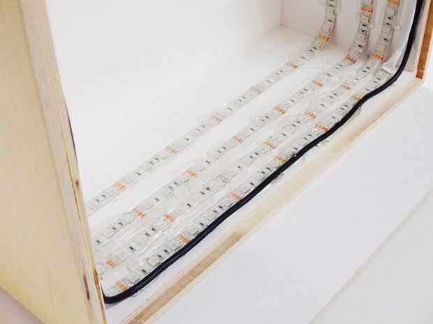 El adhesivo pegajoso de la tira de LED era un poco sospechoso, por lo que reforzó la tira por todas partes con abundante pegamento caliente.