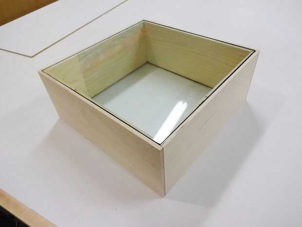 Los lados de la caja fueron dry fit para comprobar que el vidrio se ajuste correctamente. En mi caso, tuve que cortar los rebajos superior sólo un poco más para proporcionar suficiente espacio para el panel de vidrio.