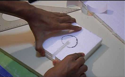 En cuanto a mi base, lo construyo usando una tabla de espuma de poliestireno cortada en 2 bloque de 15 cm por 15 cm. luego me grove un agujero en la espuma de poliestireno para la bombilla para sentarse sobre.