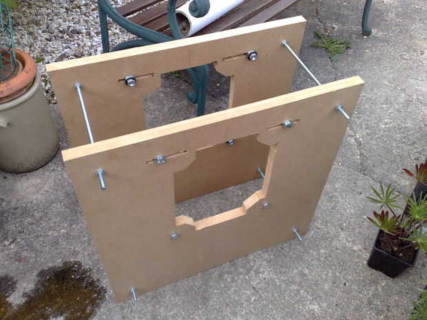 Una vez has cortado los lados de la plantilla con el dibujo (yo usé una fresadora y una sierra de calar aquí), usted está listo para armar la plantilla.