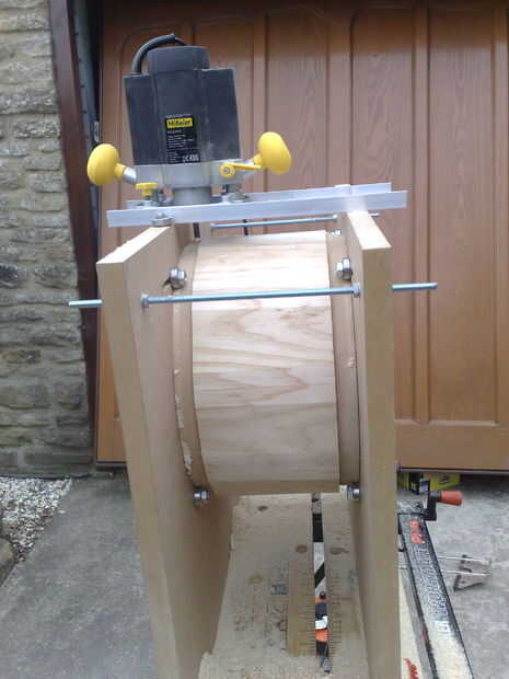 Ahora configurar su router a profundidad fija y girar el conjunto a mano. Sigue aumentando la profundidad de su router hasta alcanzar el diámetro requerido de la cáscara. Se trata de ~2.2 mm mayor que los asaltos que se ejecutan en la plantilla. No te preocupes la cáscara está ligeramente áspero en este punto, que esto va ser lijar a mano para conseguir un acabado perfectamente liso.