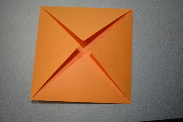 Ahora usted tendrá que doblar las cuatro esquinas hacia el centro.