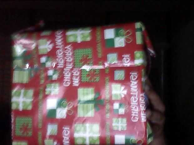 ahora que tienes el papel de embalaje en el tamaño de su caja, tomar un regalo que le quieres dar y ponerlo dentro de la caja y tomar el papel de embalaje y colocarlo alrededor de la caja y utilice cinta para cerrarla, ahora toma un arco (o como se llame) y cinta adhesiva encima de la caja. Ahora su officaly hecho con la fabricación de su caja.