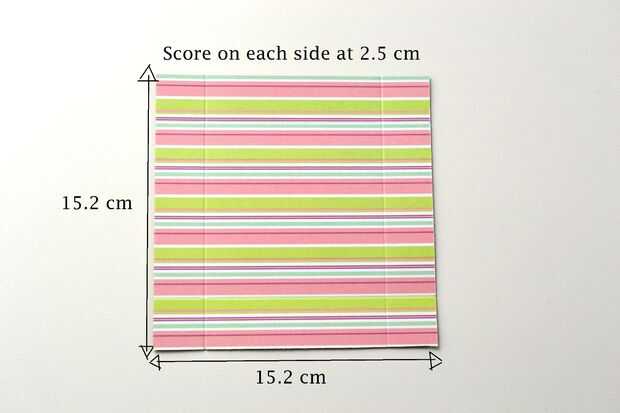 Ahora toma el papel diseñado y puntuación en 2,5 cm por cada lado.
