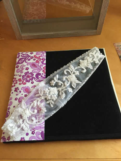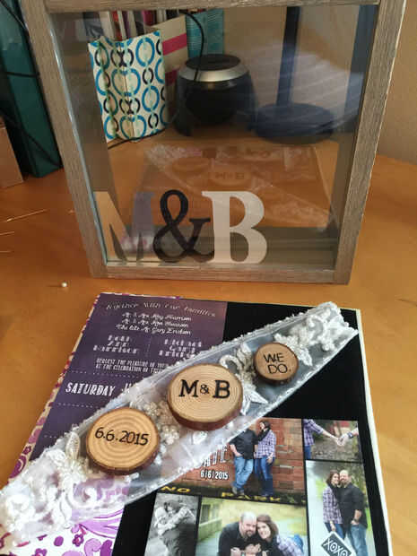 Empieza burlándose de cómo desea que sus recuerdos arreglados. No sujete permanentemente nada hasta estar seguro de que lo tienes arreglado apenas cómo usted quiere. Mi shadowbox contiene algún papel estampado me ha gustado, pedazos de cordón de mi vestido, partes de nuestro pastel de cumpleaños, una extra guardar la fecha y una invitación extra. También compré en Michaels las letras metal ves colocada contra el vidrio para formar nuestras iniciales. Una forma para agregar profundidad e interés a su caja de sombra es poner un elemento o dos contra el vidrio como se ve en mis fotos.