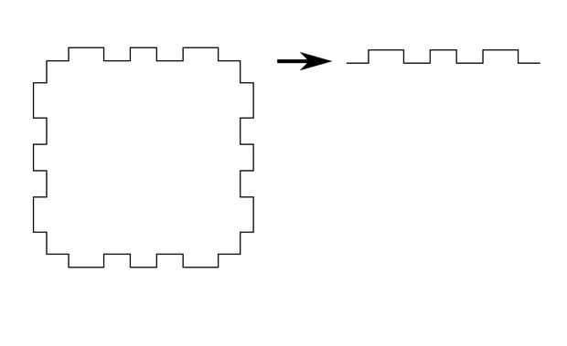 Eliminar uno de ellos y recortar tres lados de la pieza cuadrada restantes.