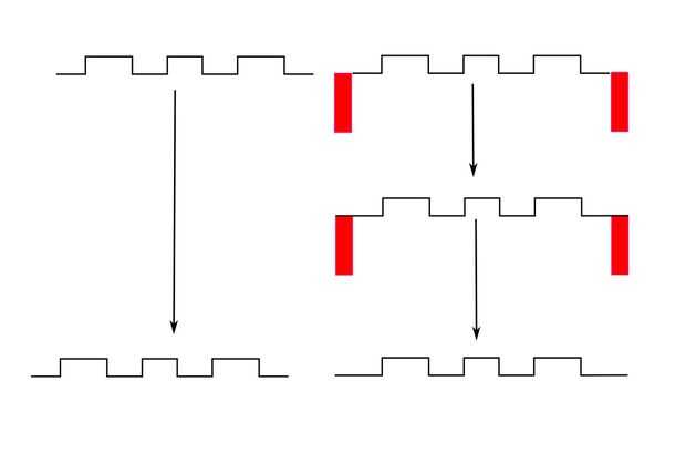 Entonces necesitas dos copias de cada línea. En la imagen de arriba, yo he coloreado la versión corta roja para evitar confusiones.