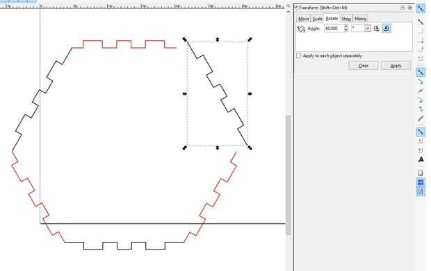 Utilizando las herramientas de transformación de su software, cinco de las líneas deben girarse en múltiplos de 60o a los ángulos de un hexágono.