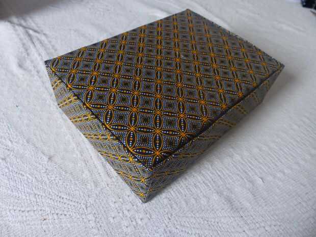 Este bonito cuadro es útil y respetuoso del medio ambiente! Reciclar una caja de cartón de la bolsita de té cubriéndolo con una tela bonita y crear un muy práctico, barato y rápido para hacer regalo. Todas las baratijas poco hacer un lío en su mesa de centro o mesa de trabajo pueden dejarse para la fácil recuperación y Voila! su área de trabajo está impecable.